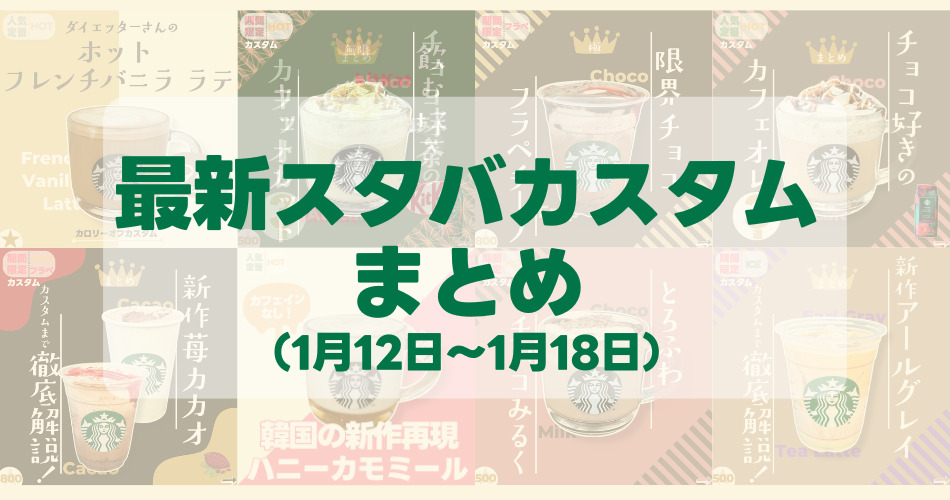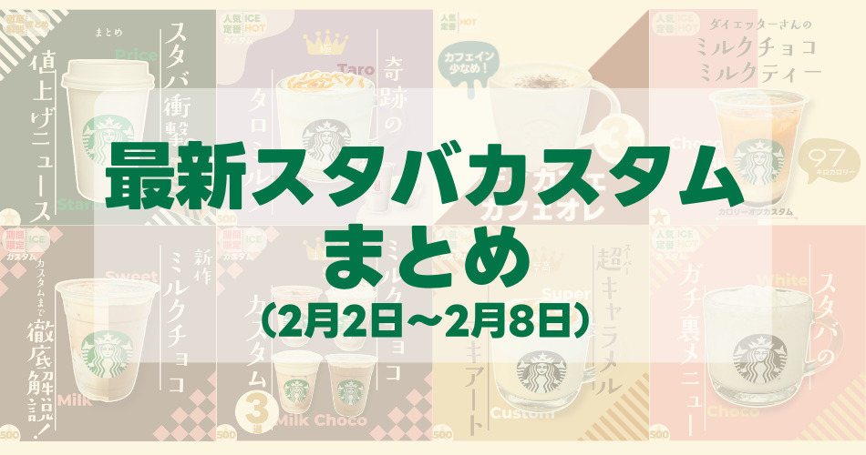 ペパーミントホットチョコレート 2026.02.03 HOT/ICE mame_starbucks まめ@毎日スタバカスタム アールグレイ &クリーミー ティー ラテ(HOT)再現 2026.01.30 HOT/ICE mame_starbucks まめ@毎日スタバカスタム 2026年2月のスタバカレンダー 2026.01.29 スタバNEWS mame_starbucks まめ@毎日スタバカスタム 新着カスタムまとめ(1/19-1/24) 2026.01.29 スタバNEWS mame_starbucks まめ@毎日スタバカスタム バニラクリームウィンナーコーヒー 2026.01.24 HOT/ICE mame_starbucks まめ@毎日スタバカスタム ホットフレンチバニララテ 2026.01.23 HOT/ICE mame_starbucks まめ@毎日スタバカスタム 新着カスタムまとめ(1/12-1/18) 2026.01.18 スタバNEWS mame_starbucks まめ@毎日スタバカスタム カフェオレ3選<カフェ ベロナ> 2026.01.18 HOT/ICE mame_starbucks まめ@毎日スタバカスタム カフェオレ3選<グアテマラ カシ シエロ> 2026.01.15 期間限定 mame_starbucks まめ@毎日スタバカスタム ダブルチョコレート フラペチーノ/ラテ解説 2026.01.15 スタバNEWS mame_starbucks まめ@毎日スタバカスタム もっと見る