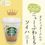 エスプレッソは苦味の少ない金のカスタムブロンドエスプレッソに変更、ミルクは豆乳に変更します。して。そこにホワイトモカシロップを追加し、上にはムースフォームとたっぷりのはちみつをかけて完成です。