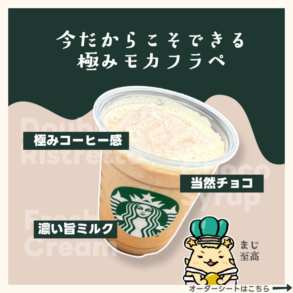 当時はなかった材料がある今だからこそできる、極みモカフラペになったのです!