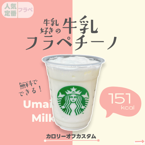 ミルク好きさんに捧げる低カロフラペチーノ、その名も「牛乳フラペチーノ」!