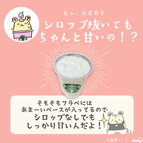 そもそもフラペにはあまーいベースが入ってるのでシロップなしでもしっかり甘いんです!