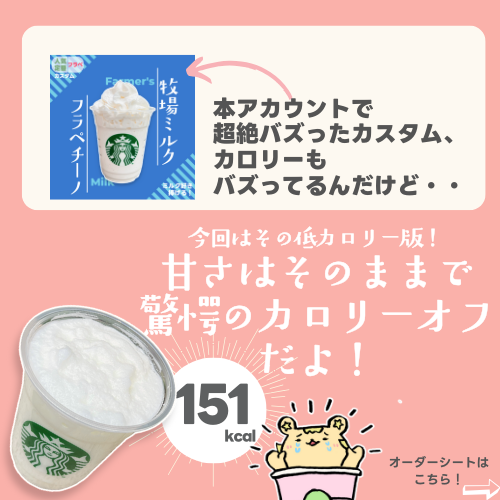 ミルク好きさんに捧げたい低カロリーフラペカスタムが誕生しました!