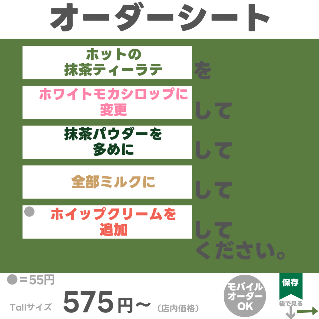 このカスタムはモバイルオーダーでも注文できるよ!
