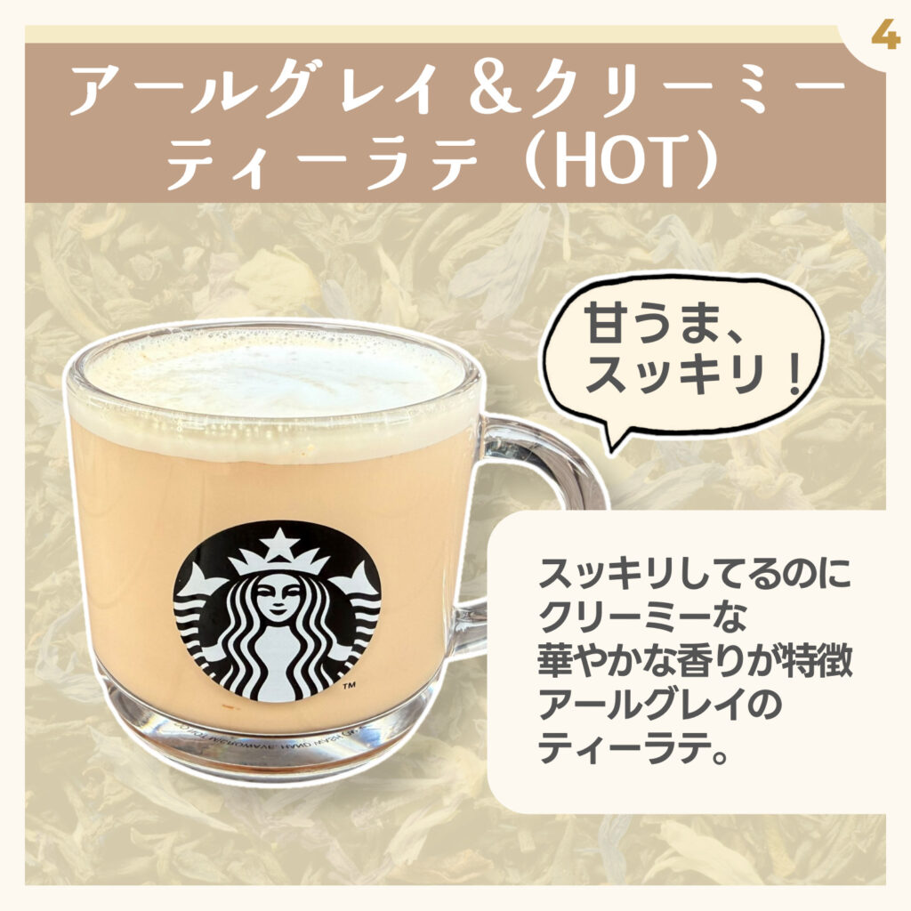 スッキリ甘うま、その名も「アールグレイ &クリーミー ティー ラテ(HOT)」!